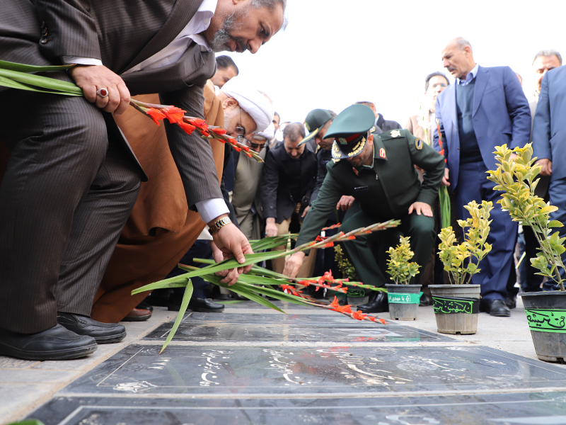 آیین غبار روبی و عطر افشانی گلزار شهدای قزوین و تجدید میثاق مسئولان کشوری و لشکری و مدیران شهری با شهدا به مناسبت گرامیداشت آغاز دهه مبارک فجر